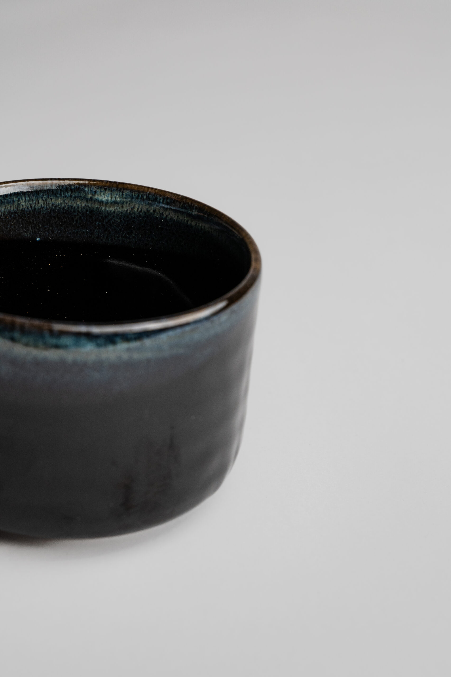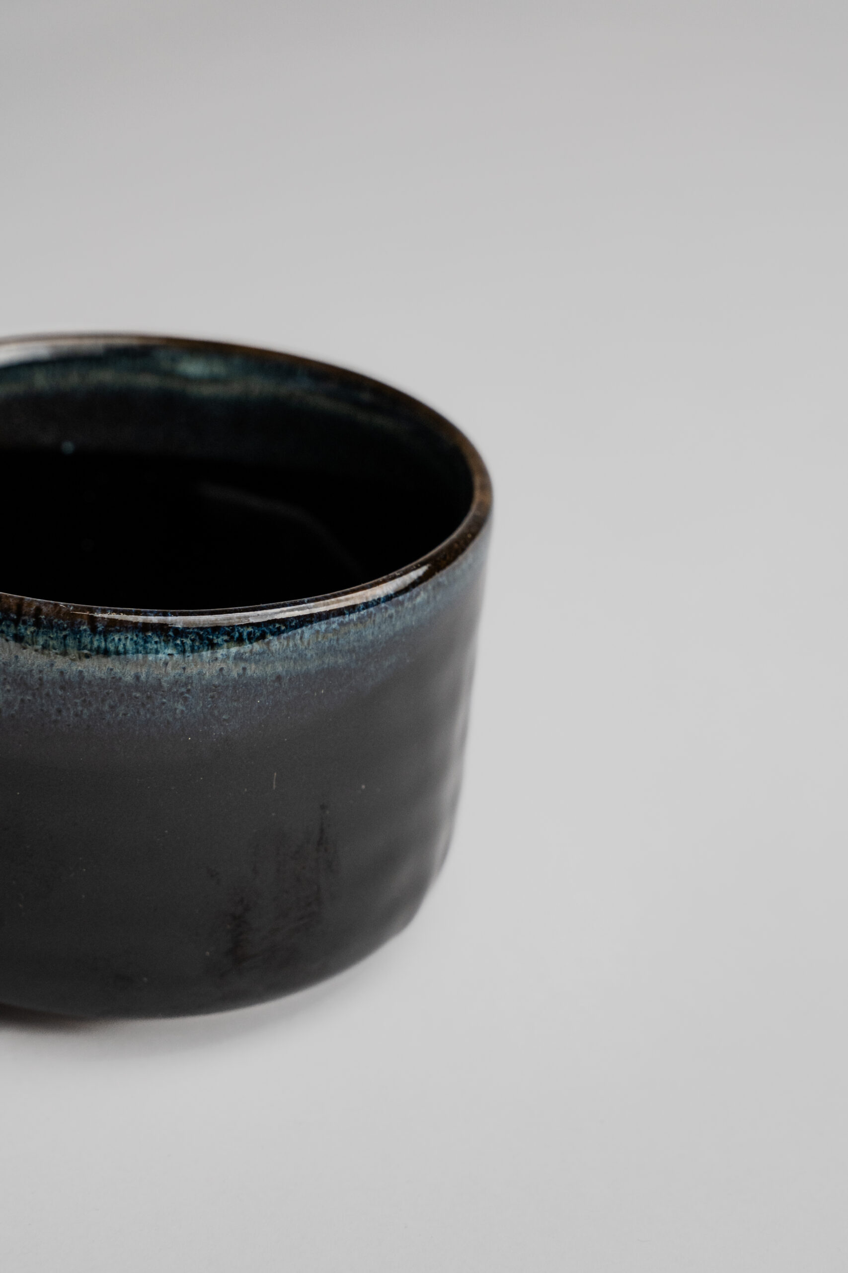 Tenmoku glazúra je známa svojou vizuálnou hĺbkou a jemnými farebnými prechodmi na okraji misky, ktoré vznikajú prirodzene počas vysokého výpalu. Každý kus je jedinečný a nesie stopy ohňa, času a ruky keramika – presne v duchu estetiky wabi-sabi.